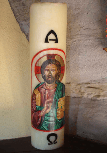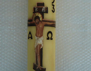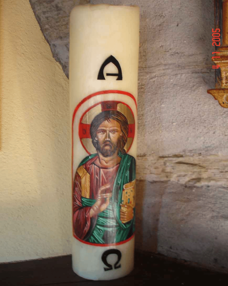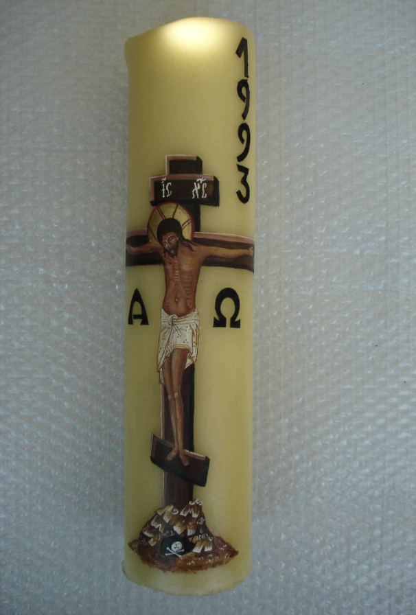 Se pasa el dibujo a un papel vegetal o seda. Se copia después con un punzón muy fino en el cirio poniendo debajo papel carbón (calco).